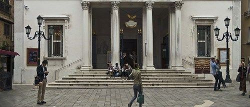 Qui siamo in Campo San Fantin , e questa che vedete è l’entrata principale al Teatro la Fenice . Costruita nel 1792 , fu distrutta prima nel 1836 e più recentemente nel 1996 , quando due elettricisti, nel tentativo di non pagare le penali per dei ritardi sul lavoro, decisero di appiccare un piccolo incendio, che presto sfuggí di mano causando la distruzione dell’intero palazzo. Tuttavia, il teatro venne ricostruito esattamente com’era e dov’era, proprio come una fenice sorta dalle proprie ceneri.