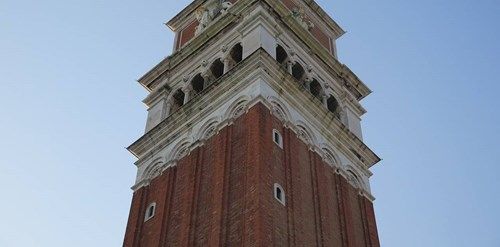 Le bâtiment du Campanile de Saint-Marc (autrefois utilisé comme phare) a commencé au XIe siècle sous le doge Pietro Tribuno, mais son apparence actuelle n'a été atteinte qu'entre 1511 et 1514. Il mesure 98,60 mètres de haut et est constitué d'une base en briques mesurant 12 mètres de côté et 49,50 mètres de hauteur. La partie supérieure est composée d'un clocheton voûté au-dessus duquel est placé un cube en briques qui soutient le toit pyramidal sur lequel est placé "l'ange doré", une statue en or de l'archange Gabriel.