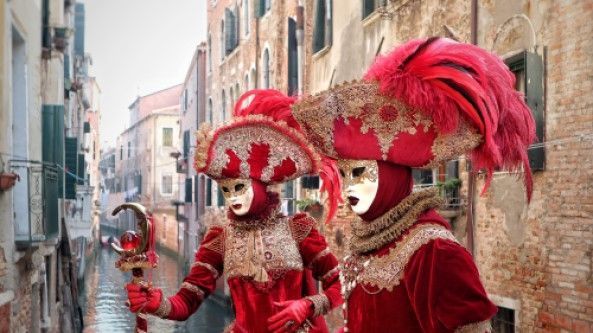 Venise était autrefois appelée "la ville des masques". Le Carnaval durait six mois et les gens portaient des masques en permanence. Le jeu qui se déroulait jour et nuit était décrit par le Grand Conseil comme "solennel, continu, universel, violent".