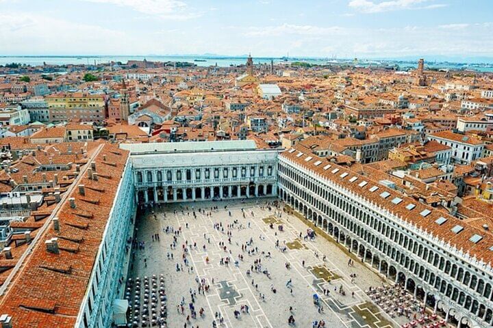 • Vista panoramica dal Campanile di San Marco. Ammira il paesaggio urbano di Venezia dal suo punto più alto.